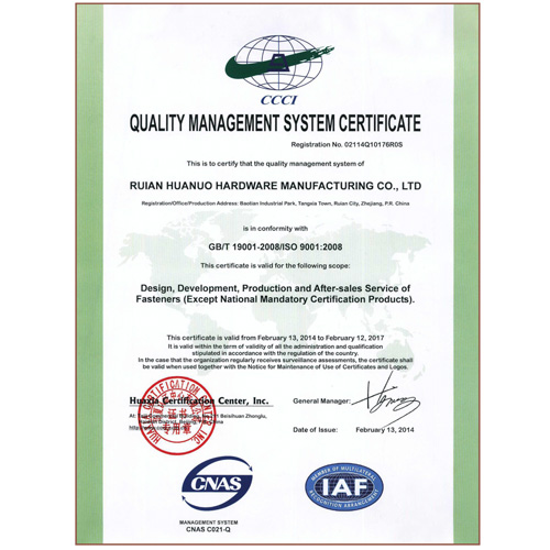 質(zhì)量管理體系認(rèn)證證書(shū)